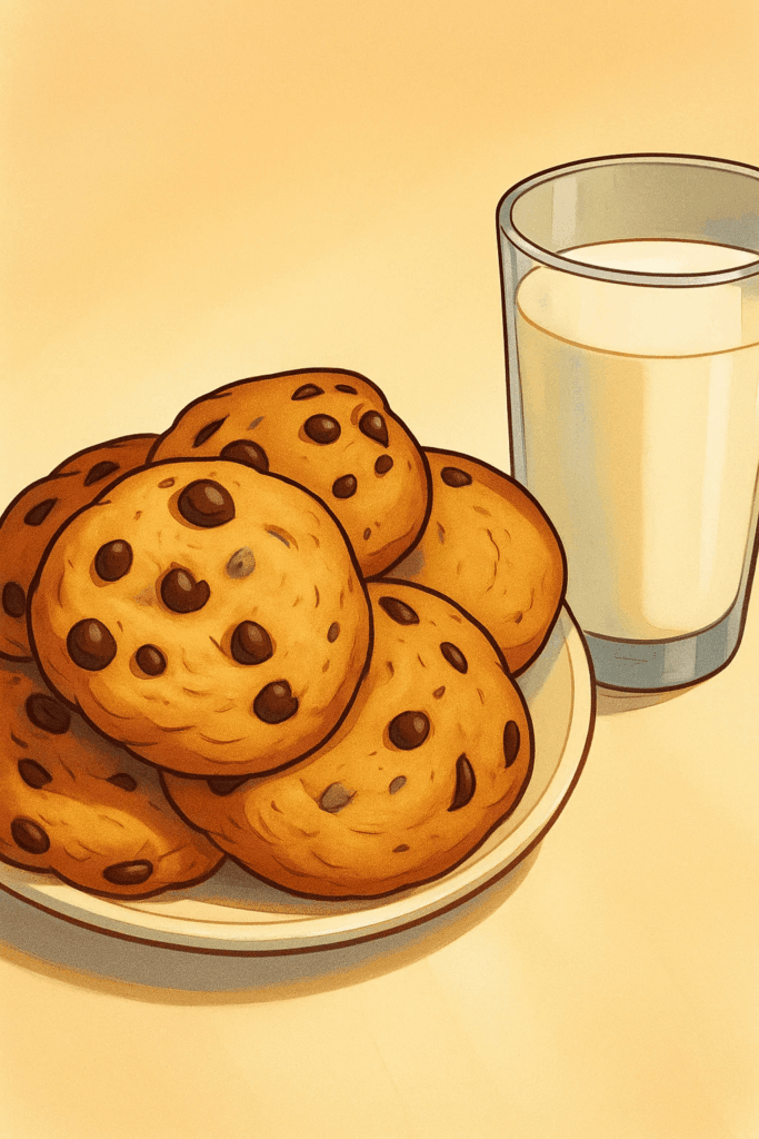 - Enjoy your freshly baked, perfectly chewy chocolate chip cookies with a cold glass of milk.